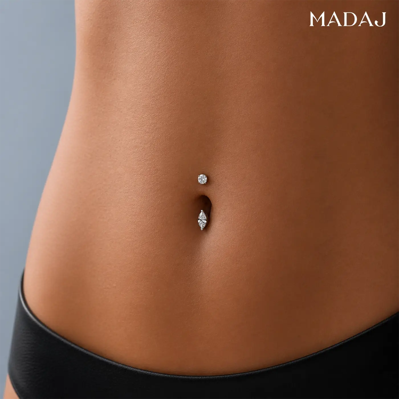 Discover our collection of 18k gold belly button piercings, available in multiple sizes for a perfect fit, as well as our diamond belly button jewelry, designed to combine elegance, safety, and long-lasting quality.