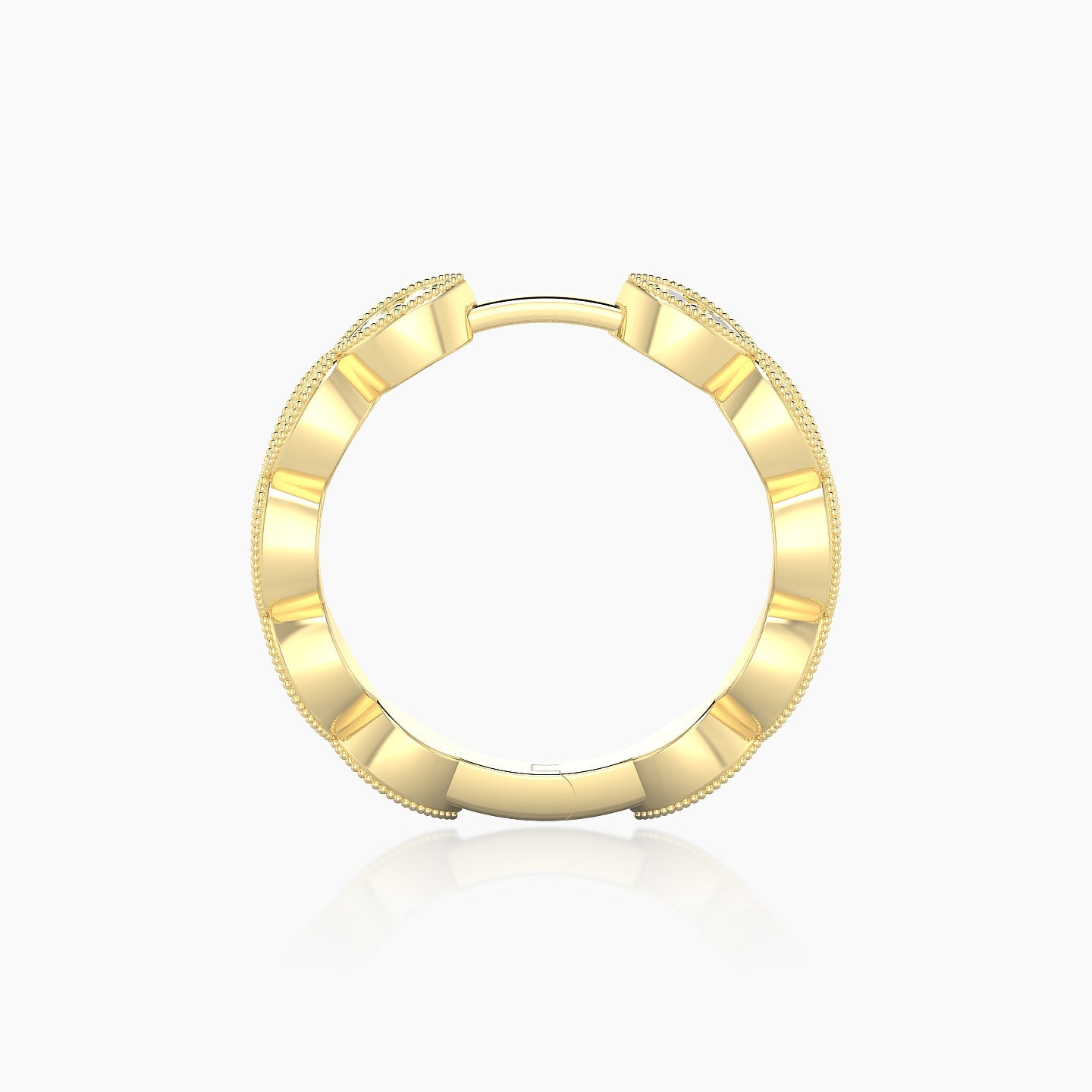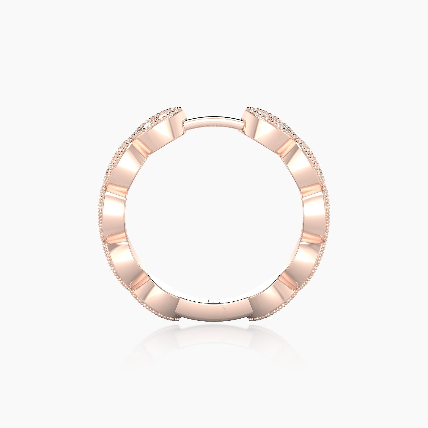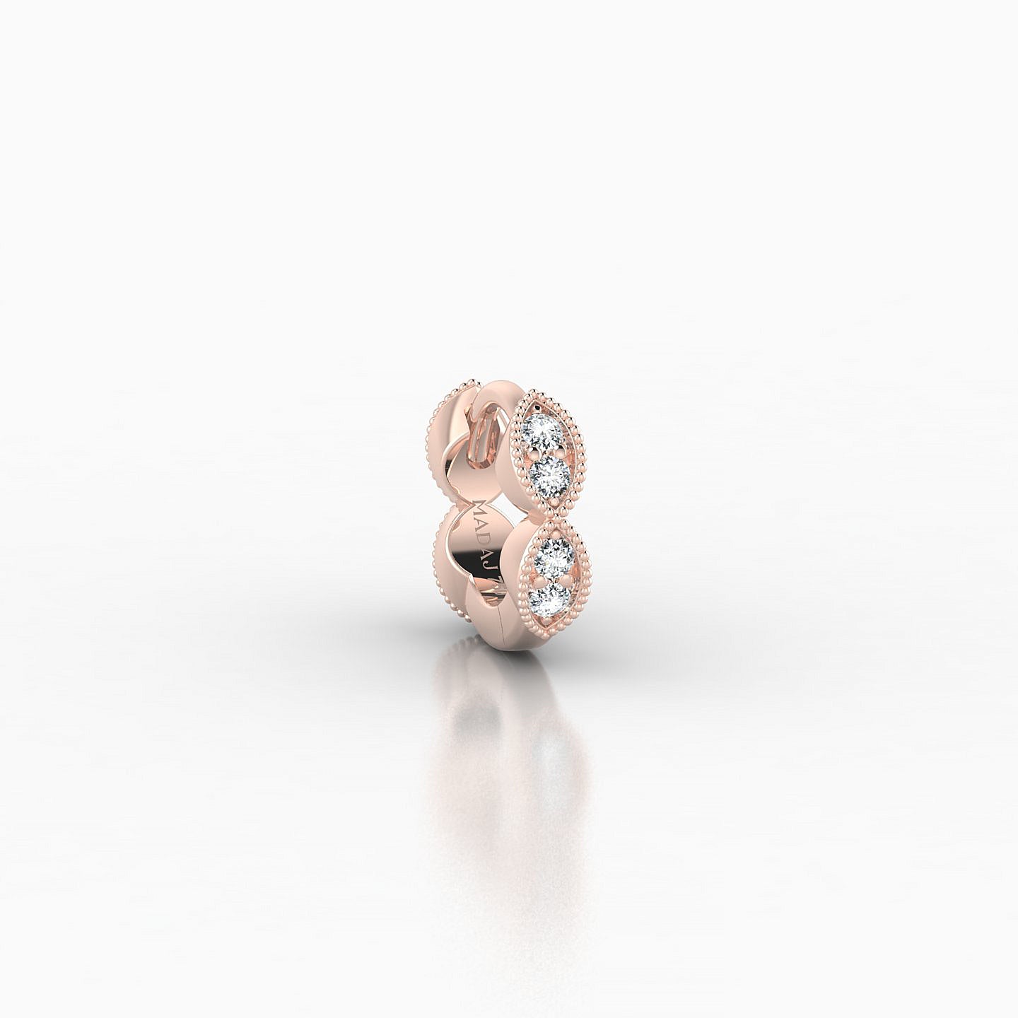 Bellona is an 18k gold hoop piercing, available in yellow, white, or rose gold. Equipped with a clicker clasp, it offers a reliable and subtle closure. This hoop is set with natural diamonds, of round shape, of G - VS quality. This piercing is suitable for the lobe, helix, anti-helix, conch, contraconch, rook, tragus, and antitragus.