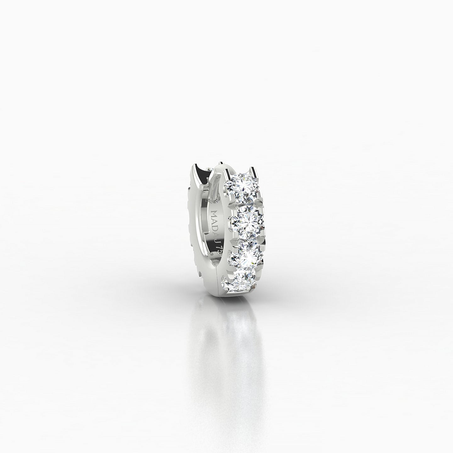 Cleta is an 18k gold hoop piercing, available in yellow, white, or rose gold. A clicker closure provides both comfort and a sleek, secure hold. This hoop is set with natural diamonds, of round shape, of G - VS quality. This piercing is suitable for the lobe, helix, anti-helix, conch, contraconch, rook, tragus, and antitragus.