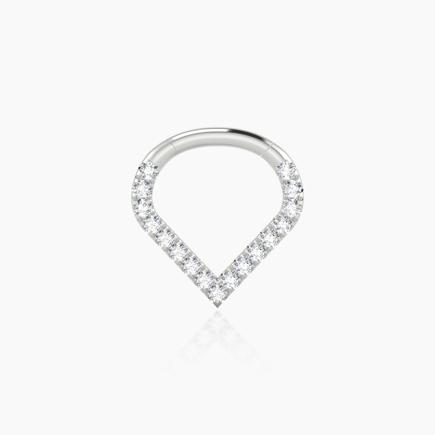 This 18k gold septum piercing, called Cora, comes in your choice of yellow, white, or rose gold. Its integrated clicker system ensures a stable and reliable closure for continuous wear. This piercing's elegant design is enhanced by natural diamonds, of round shape and G - VS quality. A model designed for septum wear only.