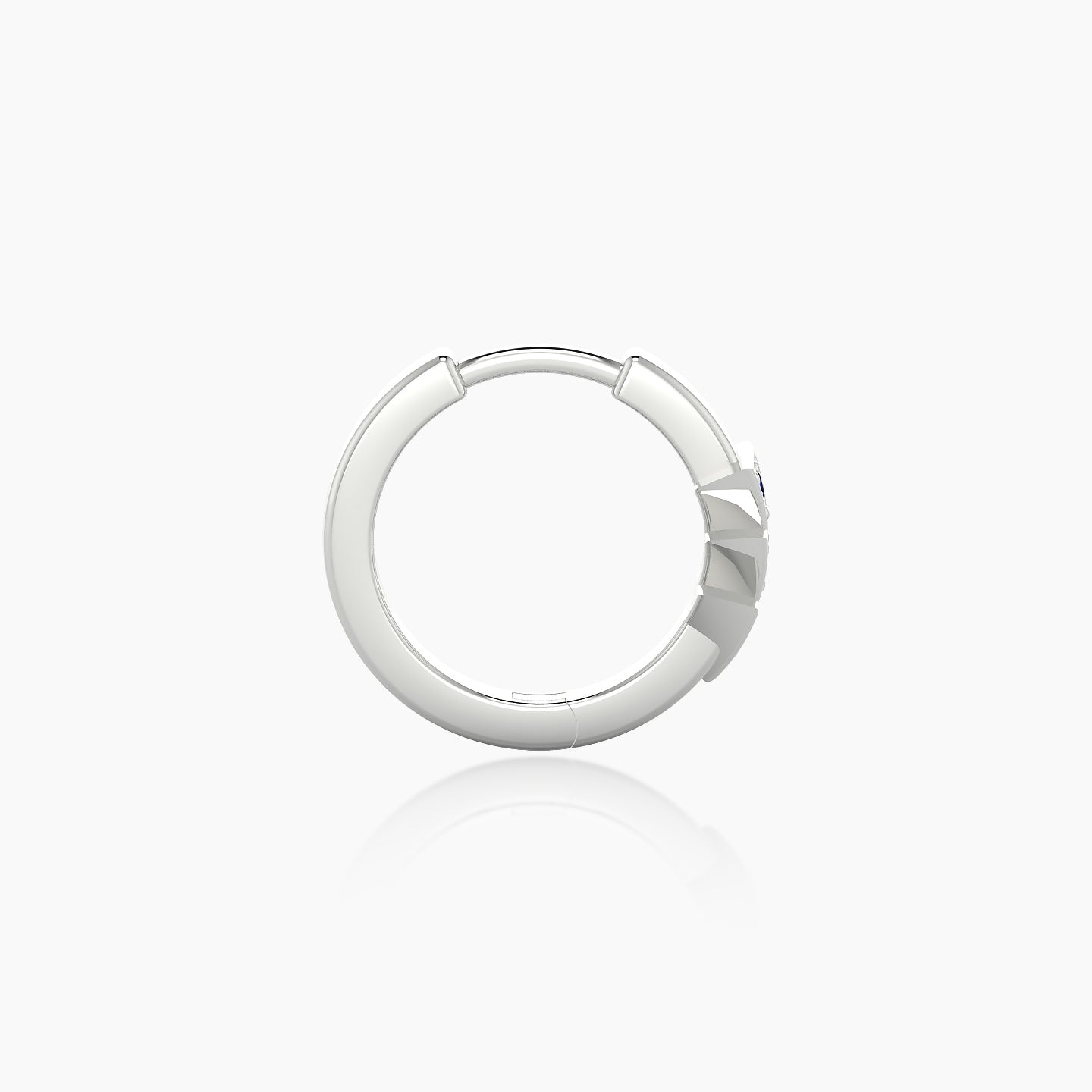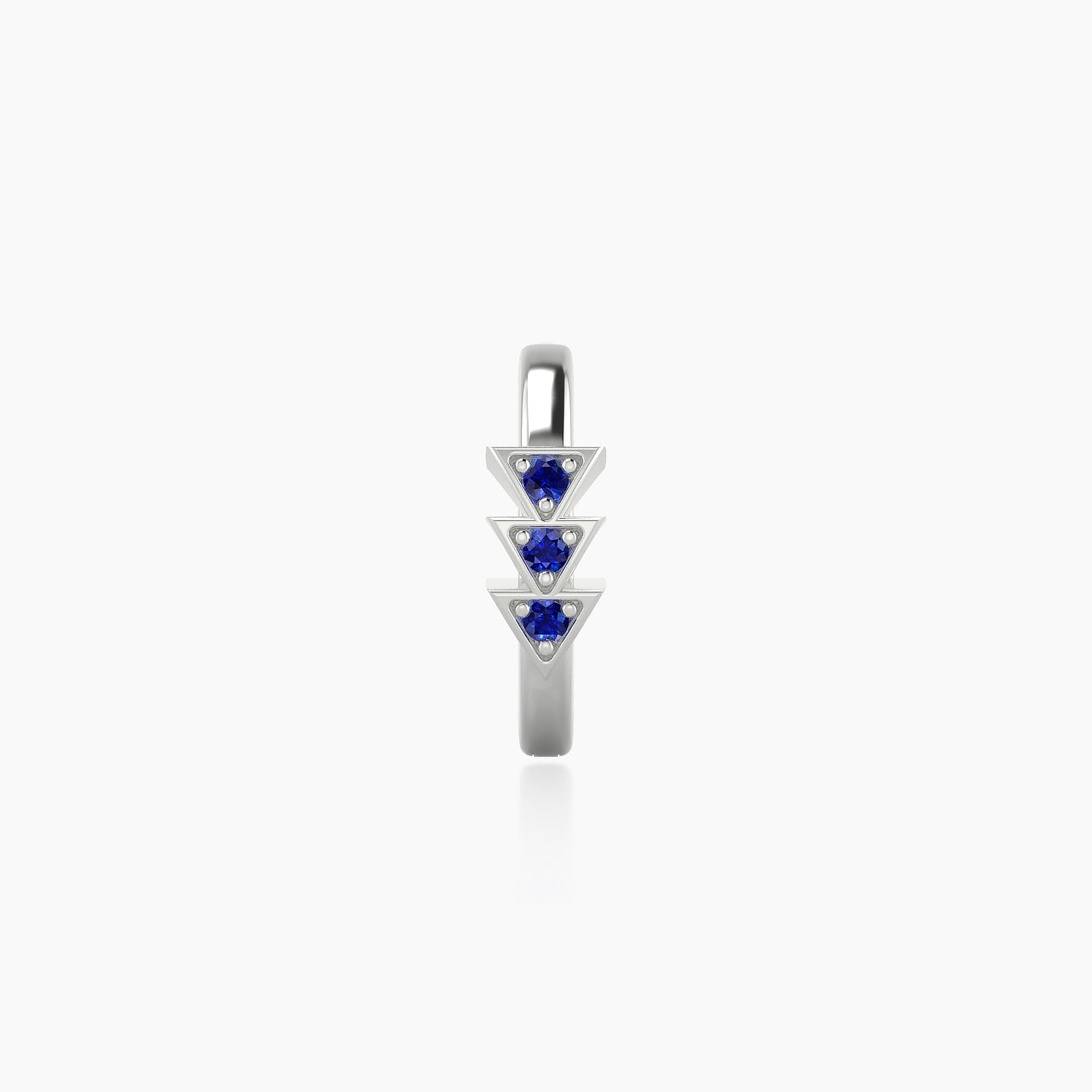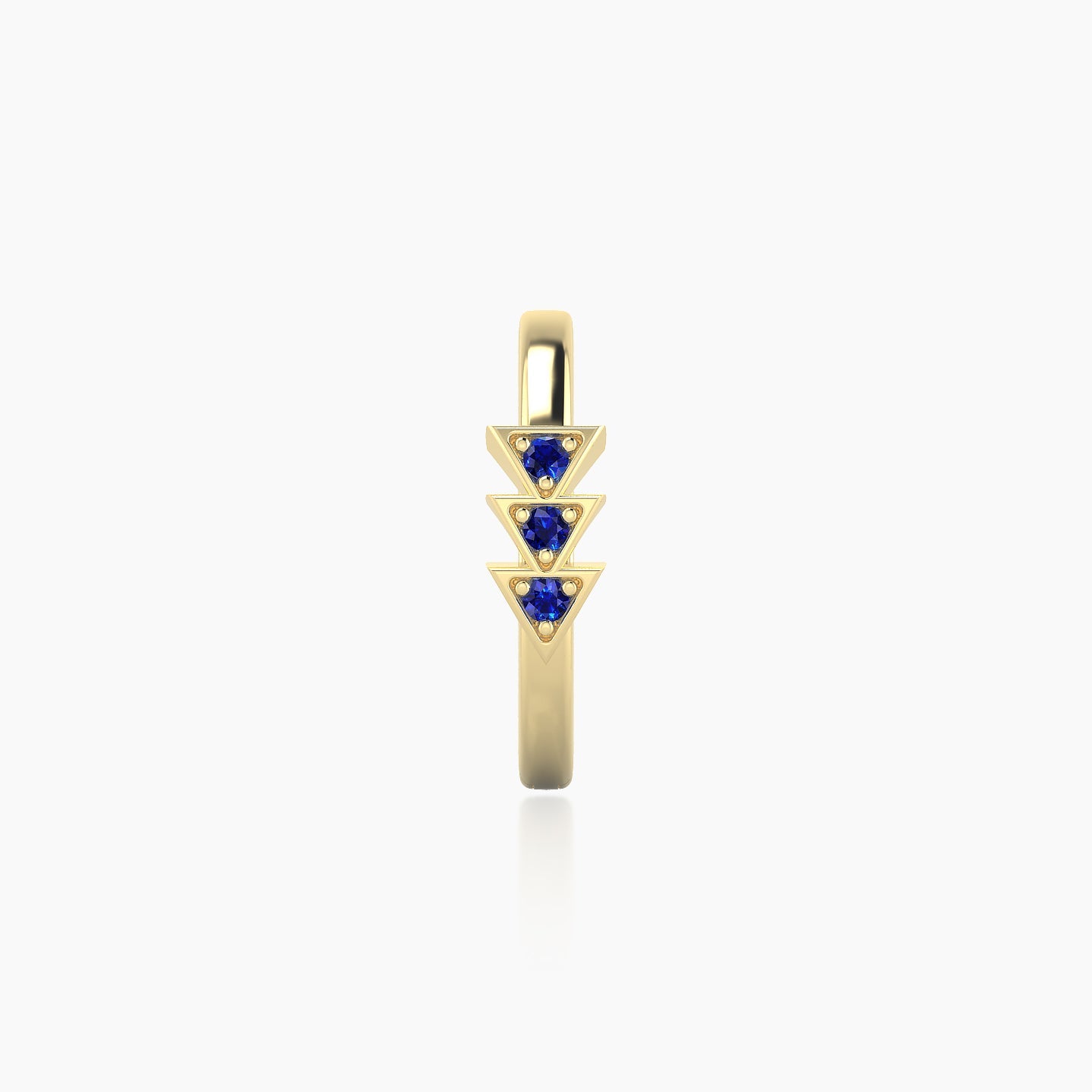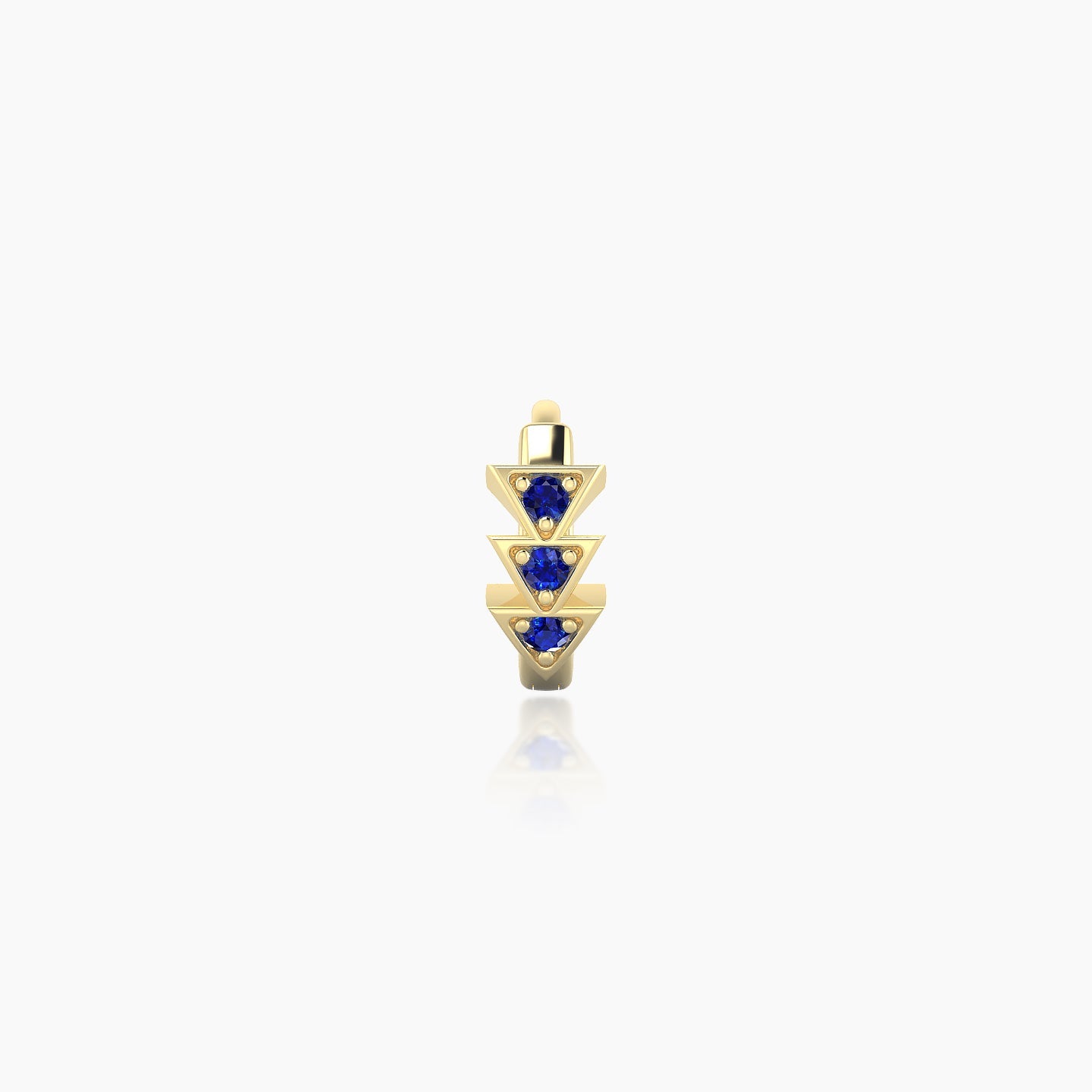 Cybele is a hoop piercing crafted from 18k gold and comes in yellow, white, or rose gold. Its clicker mechanism guarantees a safe and invisible fit. It is adorned with natural sapphires, of round shape, of AAA quality. This piercing is suitable for the lobe, helix, anti-helix, conch, contraconch, rook, tragus, and antitragus.
