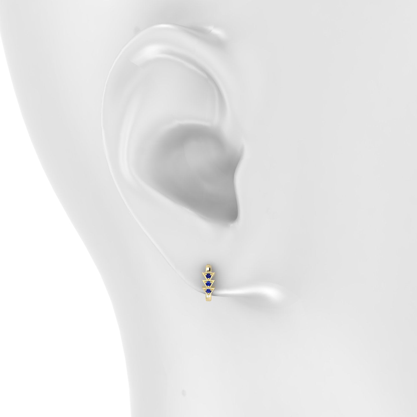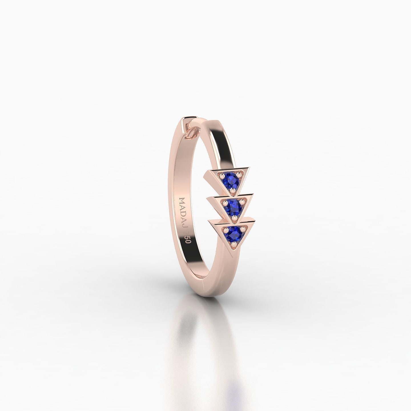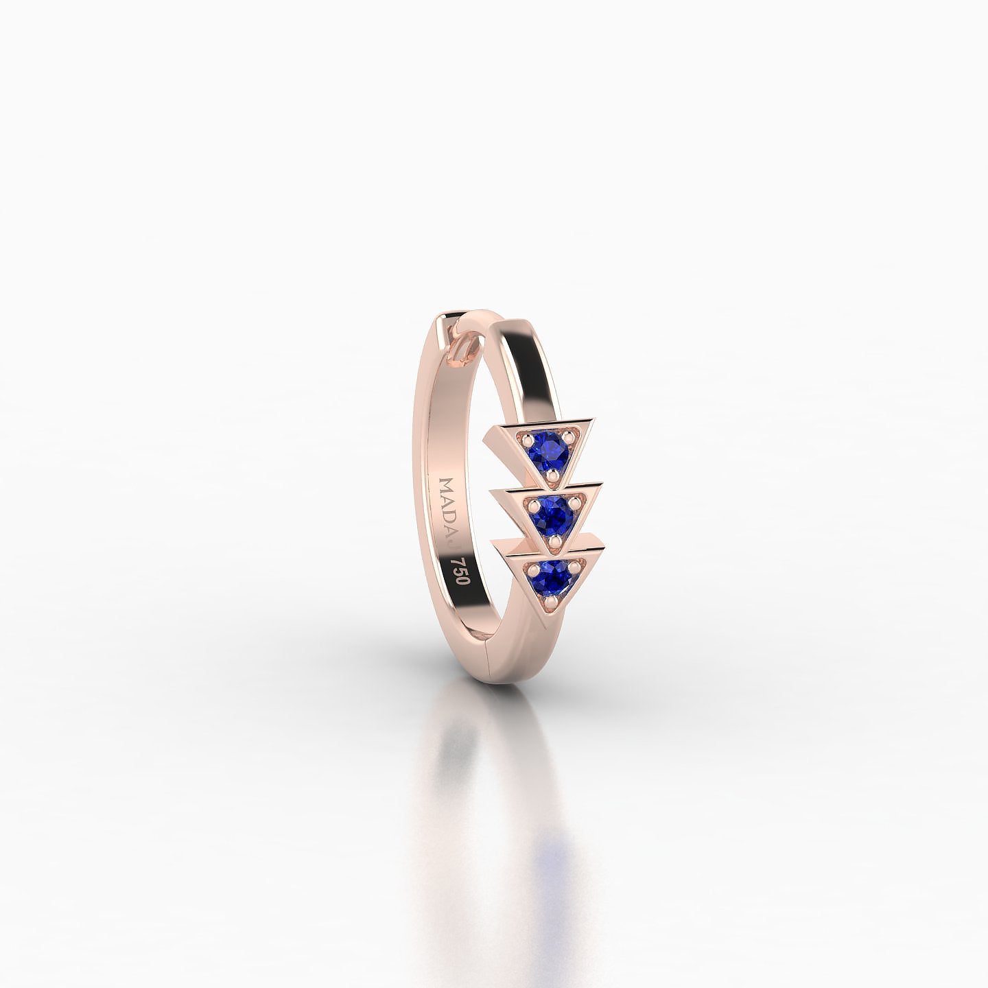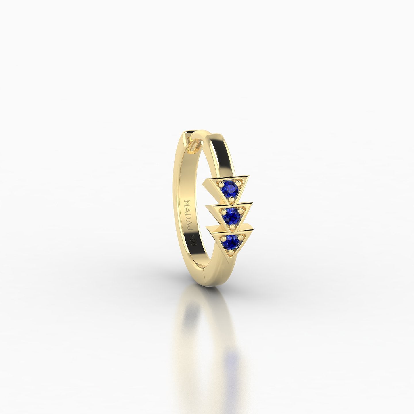Cybele is a hoop piercing crafted from 18k gold and comes in yellow, white, or rose gold. Its clicker mechanism guarantees a safe and invisible fit. It is adorned with natural sapphires, of round shape, of AAA quality. This piercing is suitable for the lobe, helix, anti-helix, conch, contraconch, rook, tragus, and antitragus.