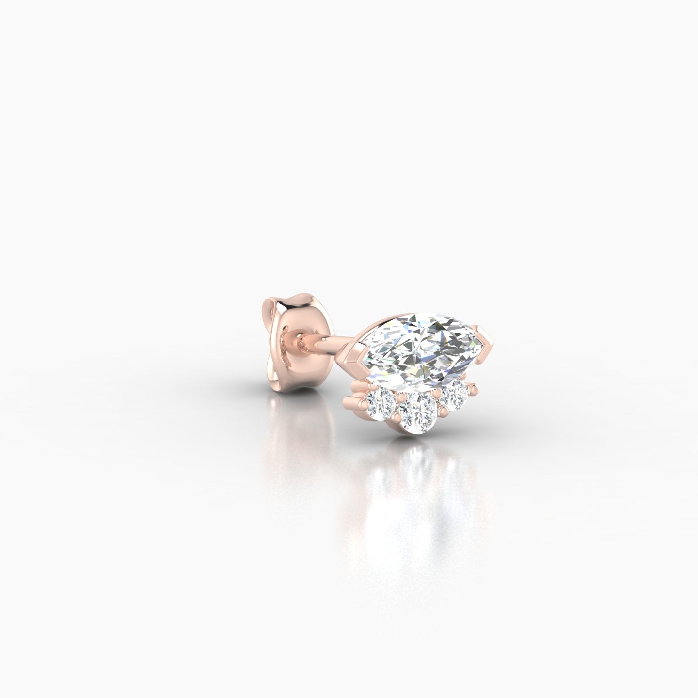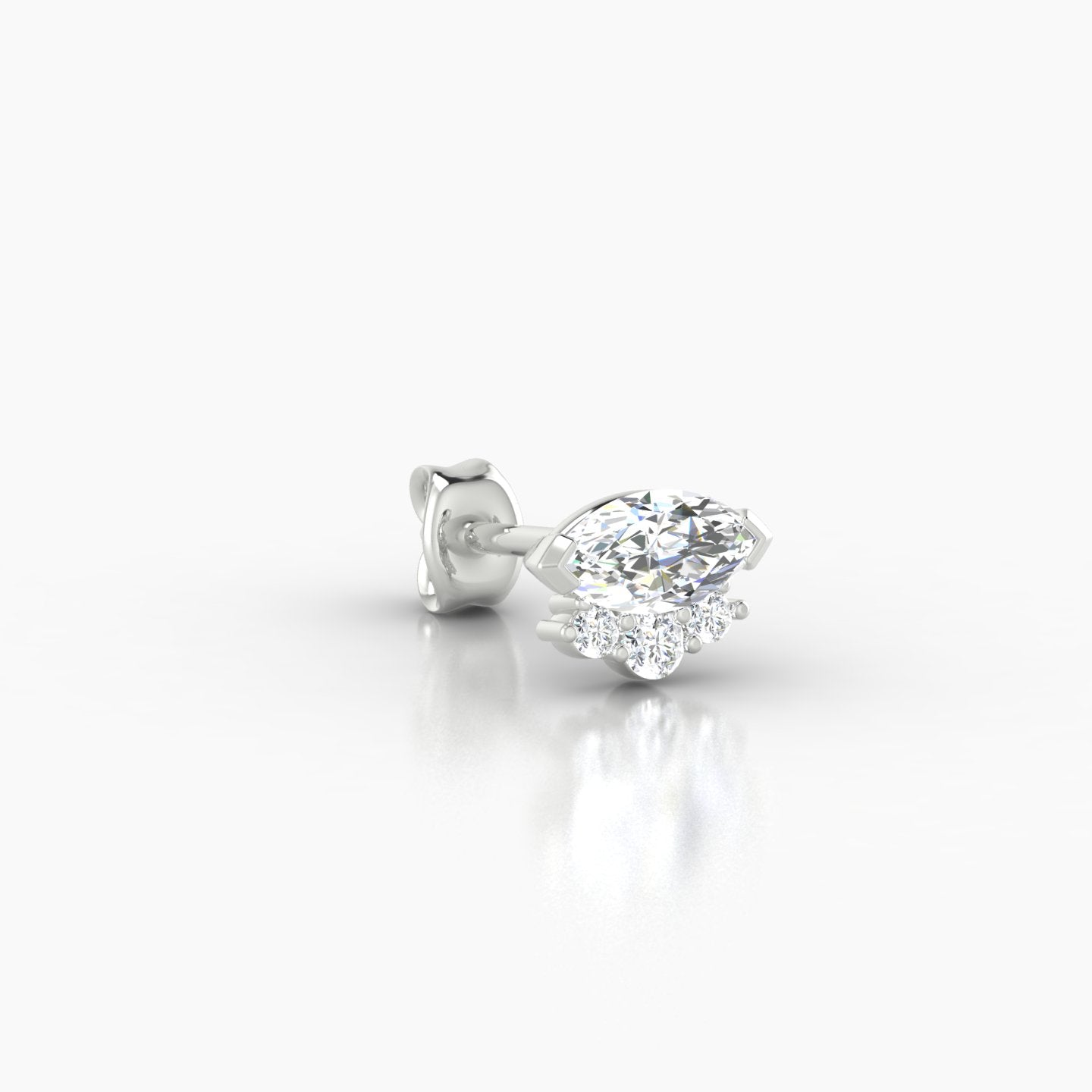 Crafted in solid 18k gold, Danu is available in yellow, white, or rose gold. The piece features a traditional butterfly-style closure. Featuring natural diamonds of exceptional marquise and round shapes and G - VS quality, this piece offers subtle sophistication. This piece is intended for lobe wear.