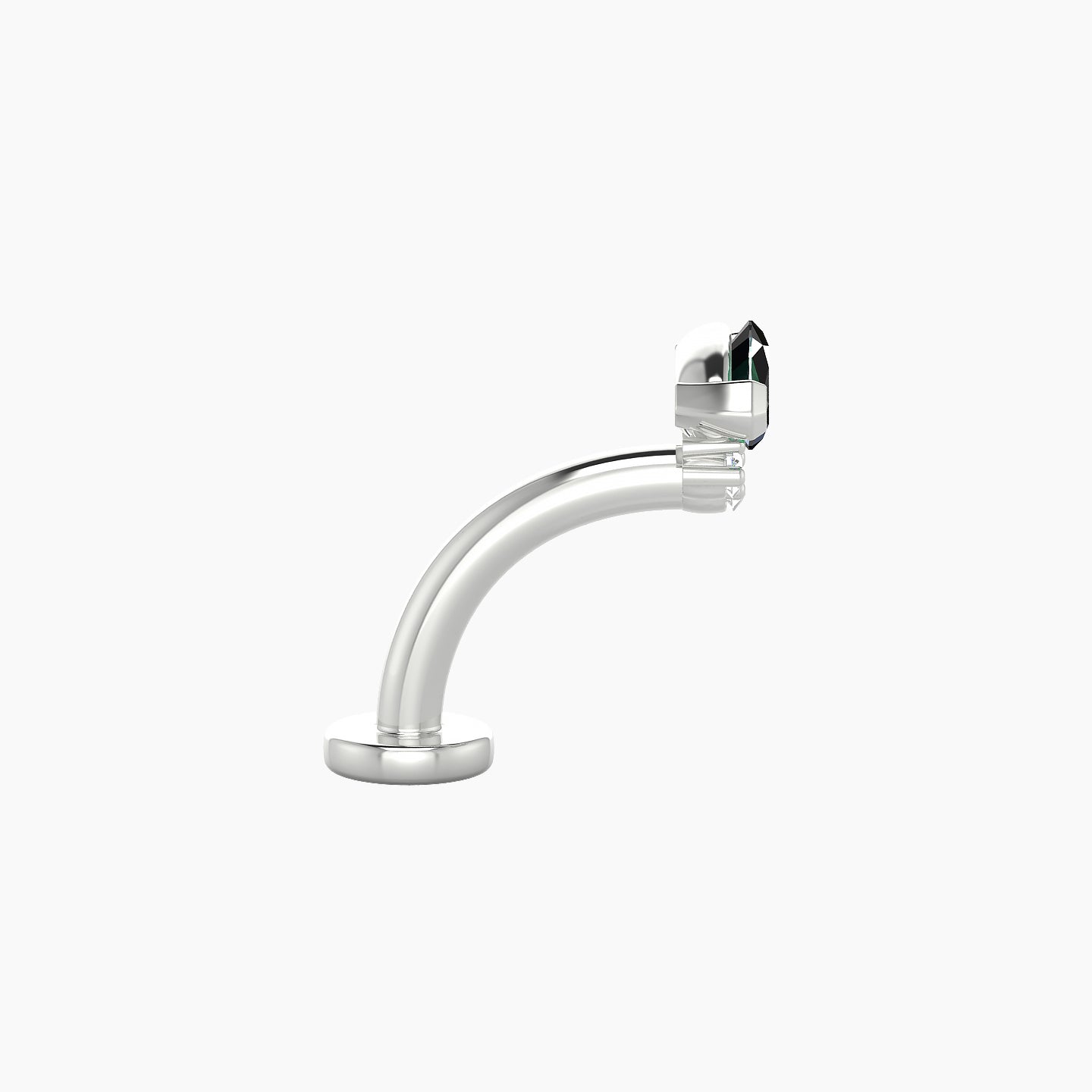 Danu is a floating belly button piercing in 18k gold, available in yellow, white, or rose gold. It features a screw-back closure for a secure fit. The piercing is adorned with marquise and round shapes natural emeralds and diamonds of AAA and G - VS quality. The floating design raises the top stone above the bar for a striking effect.
