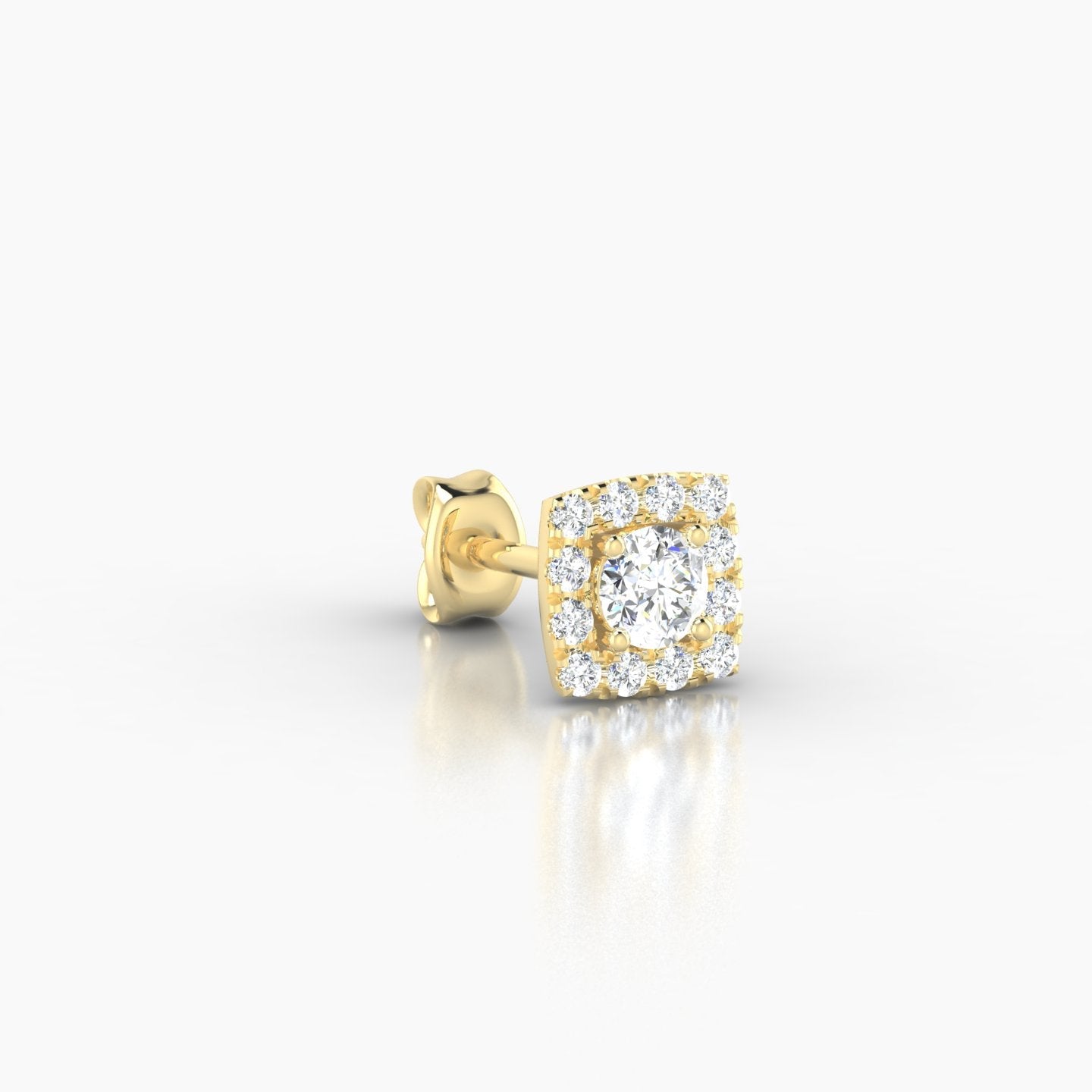 Crafted in solid 18k gold, Diane is available in yellow, white, or rose gold. It comes with a simple and reliable butterfly back fastening. This piercing is set with natural diamonds of round shape, of G - VS quality. This piece is intended for lobe wear.