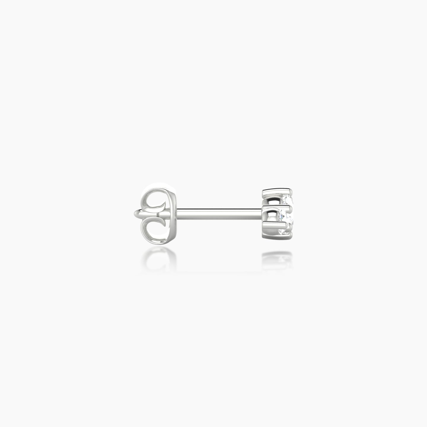 Crafted in solid 18k gold, Edesia is available in yellow, white, or rose gold. The piece features a traditional butterfly-style closure. Adorned with round shape natural diamonds carfeully of G - VS quality, it combines sparkle and elegance. the trilogy shape makes it ideal for lobe placement.