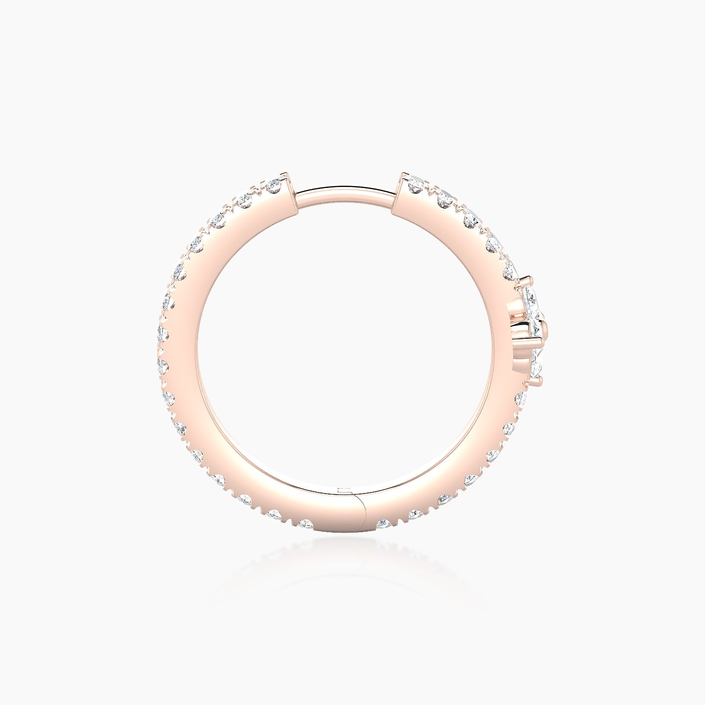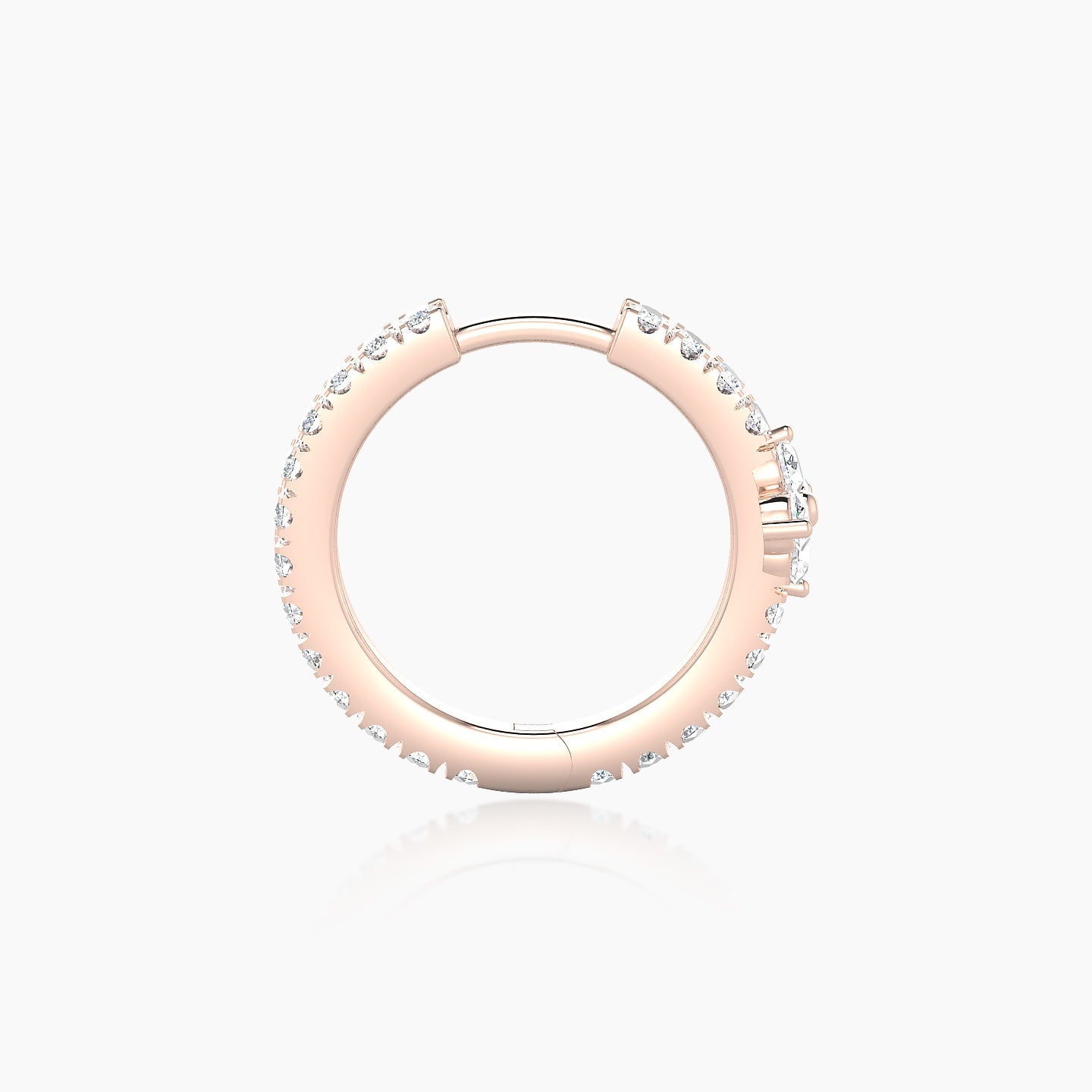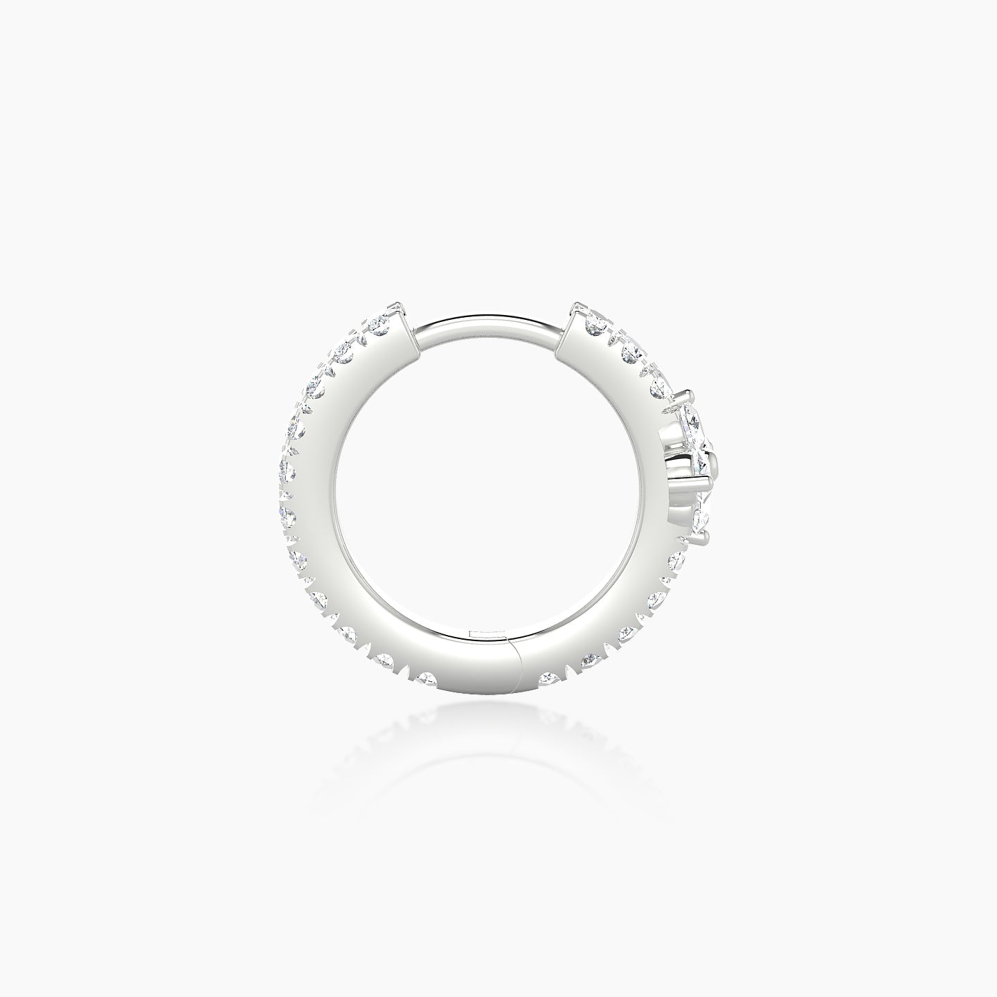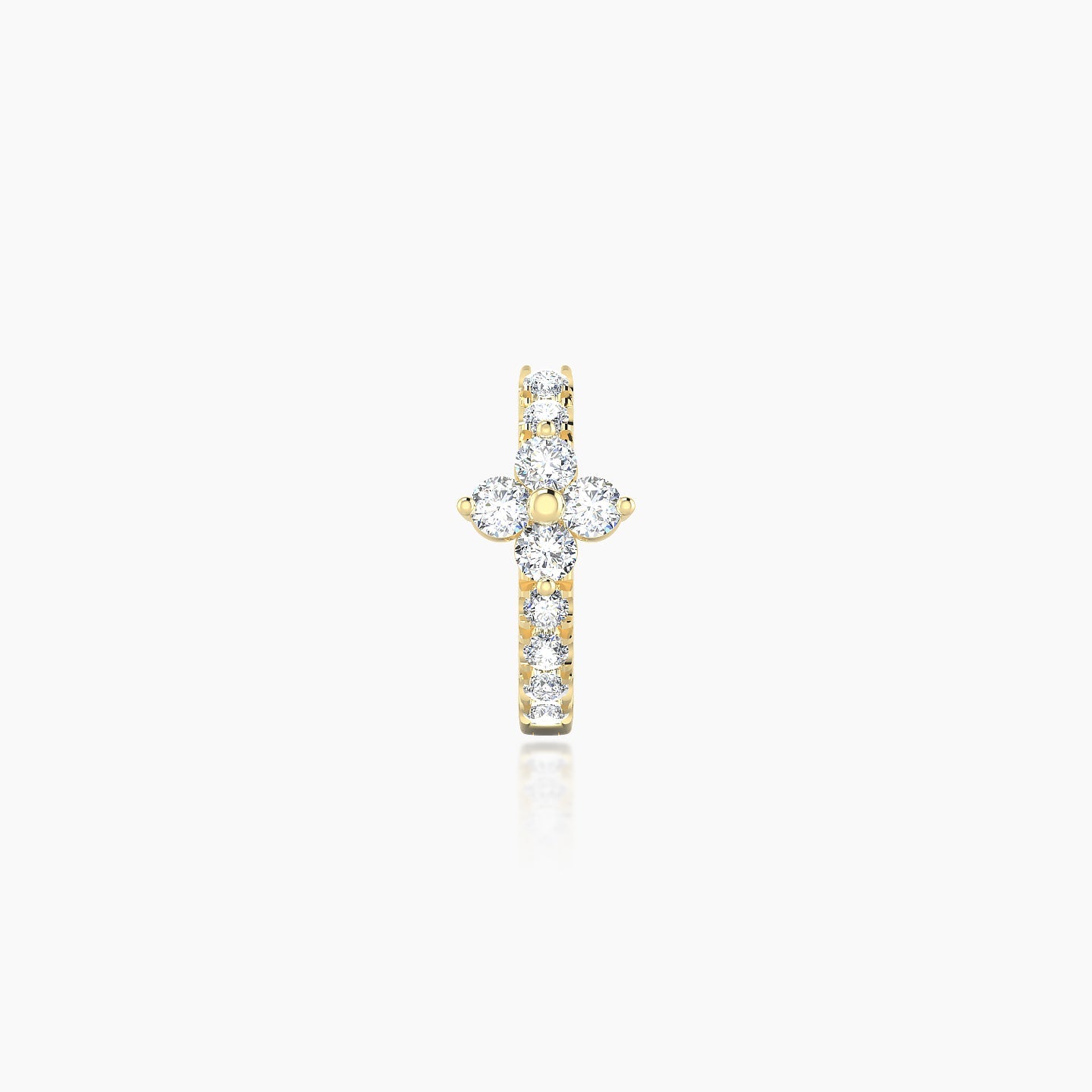 Eris is a hoop piercing crafted from 18k gold and comes in yellow, white, or rose gold. A clicker closure provides both comfort and a sleek, secure hold. This hoop is set with natural diamonds, of round shape, of G - VS quality. This piercing is suitable for the lobe, helix, anti-helix, conch, contraconch, rook, tragus, and antitragus.
