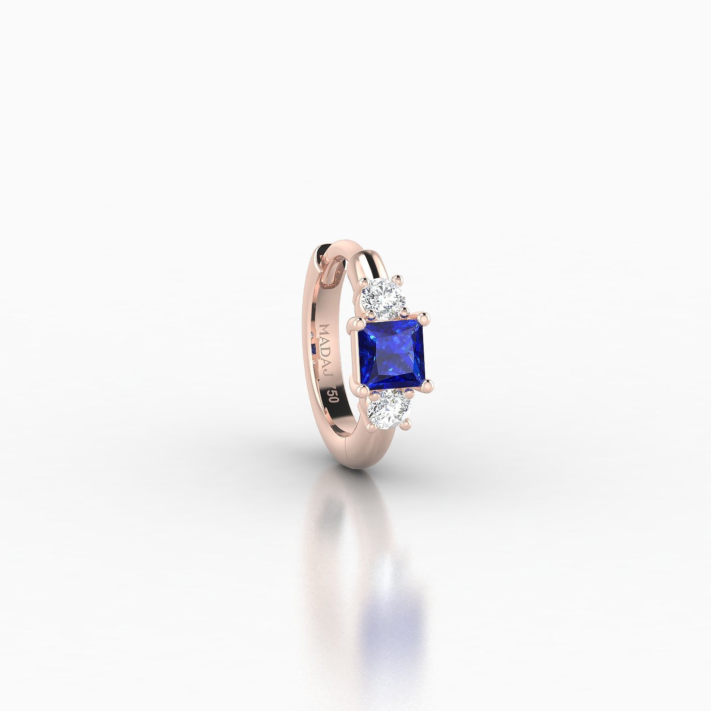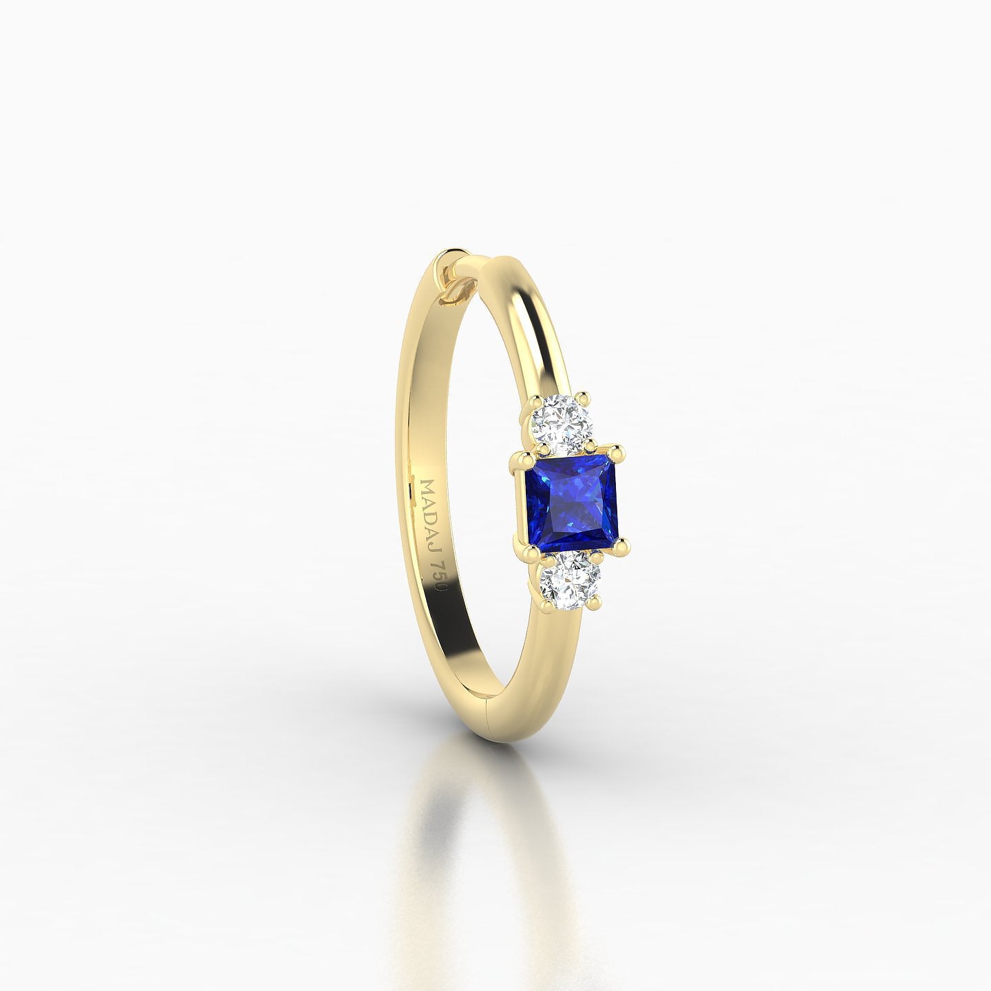 Grace is a hoop made of 18k gold, offered in yellow, white, or rose gold. It features a clicker closure, ensuring a secure and discreet fastening. This hoop is set with natural sapphires and diamonds, of princess and round shapes, of AAA and G - VS quality. This piercing can be worn on the lobe, helix, anti-helix, conch, contraconch, rook, tragus, or antitragus.