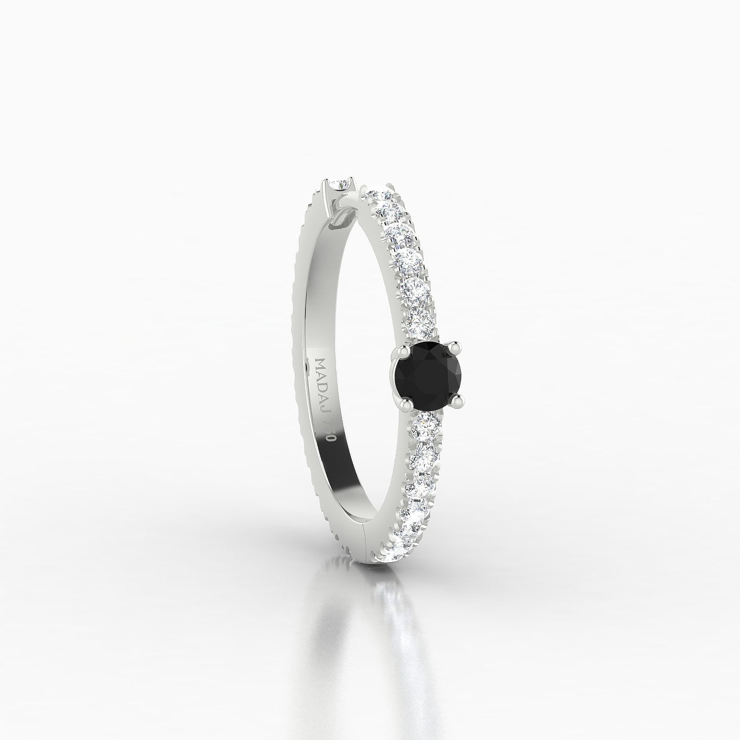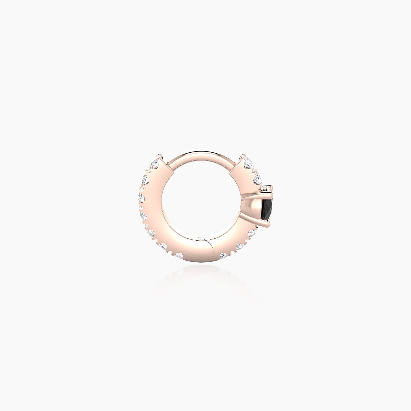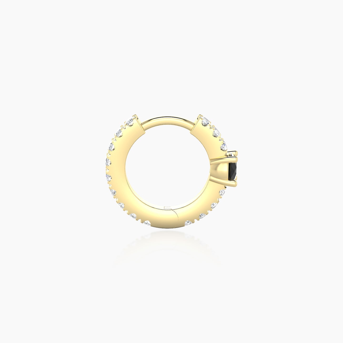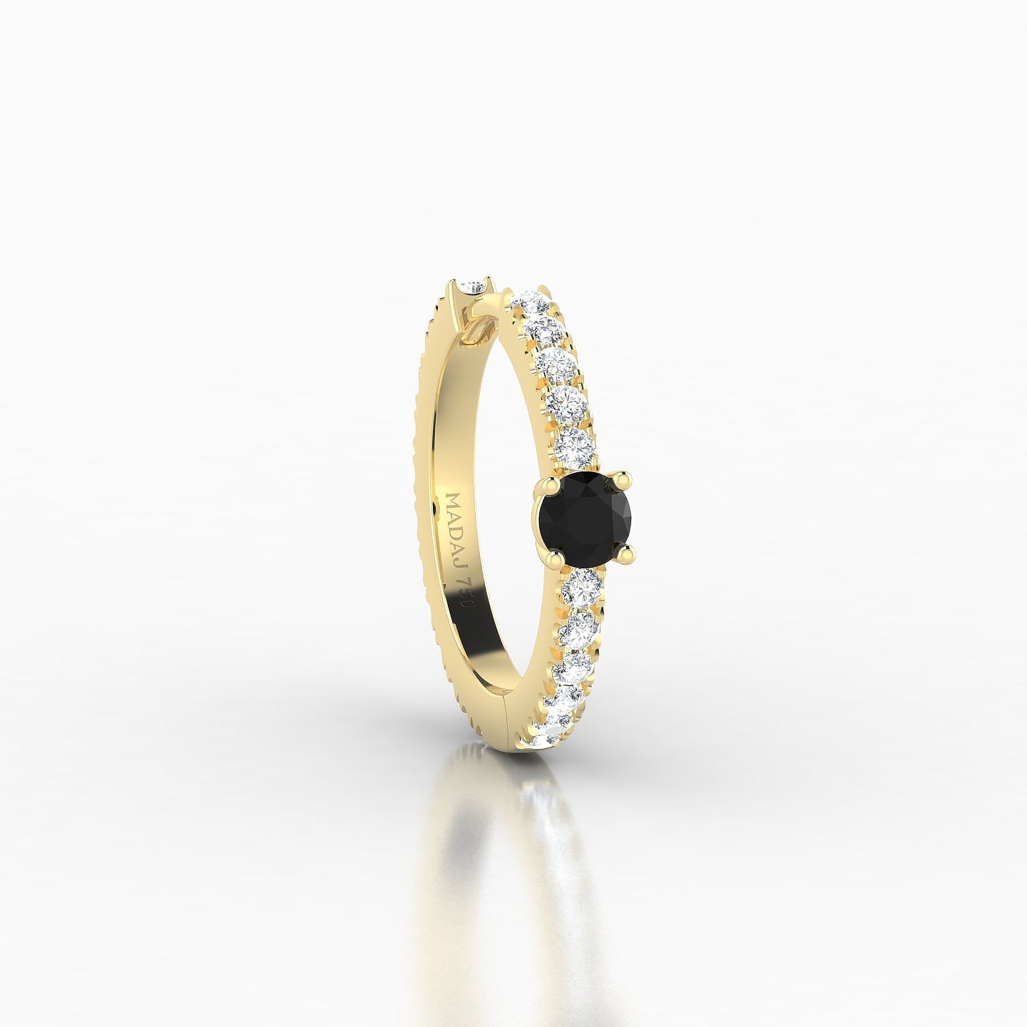 Inanna is an 18k gold hoop piercing, available in yellow, white, or rose gold. A clicker closure provides both comfort and a sleek, secure hold. The piece features round shape natural black diamonds and diamonds, of AAA and G - VS quality. This piercing is suitable for the lobe, helix, anti-helix, conch, contraconch, rook, tragus, and antitragus.