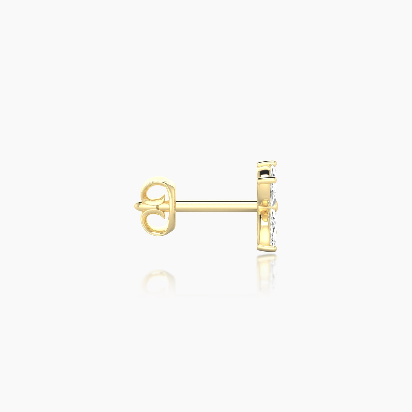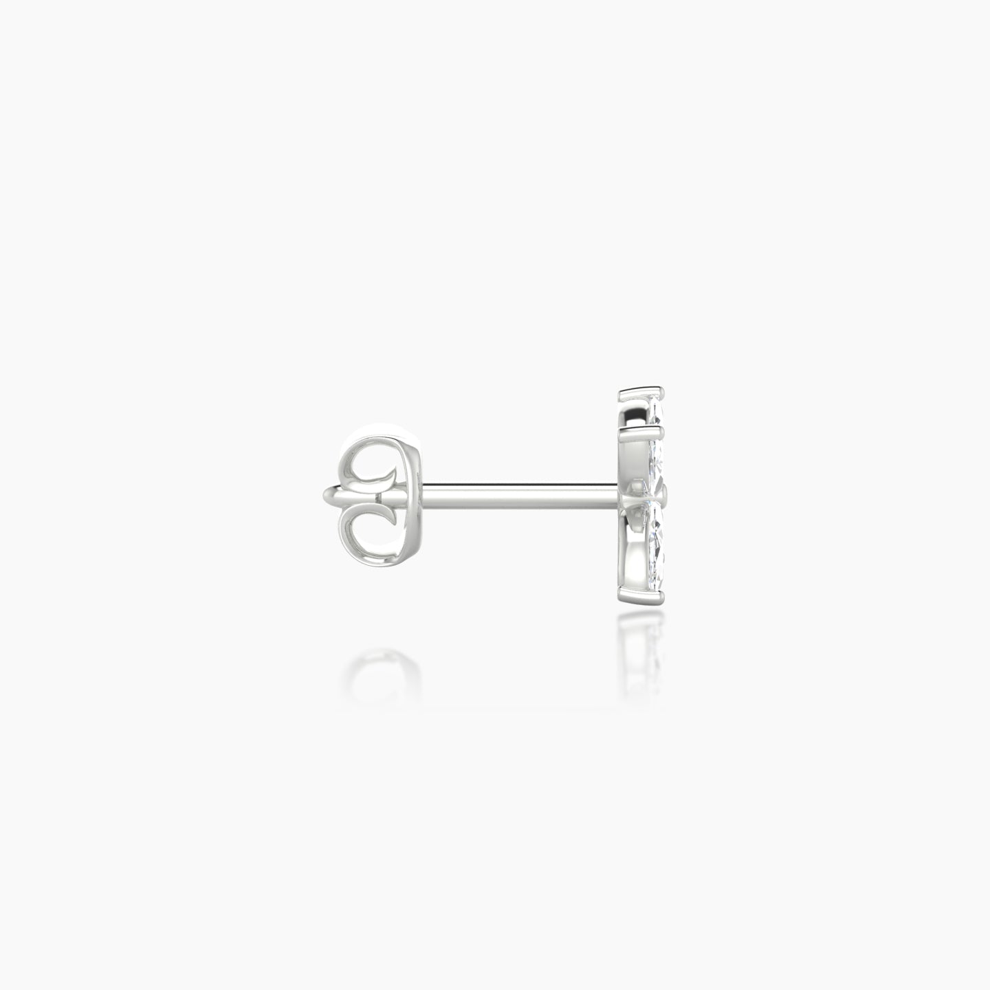 Crafted in solid 18k gold, Kane is available in yellow, white, or rose gold. The piece features a traditional butterfly-style closure. This piercing is set with natural diamonds of marquise shape, of G - VS quality. with its flower design, this piece is intended for lobe wear.