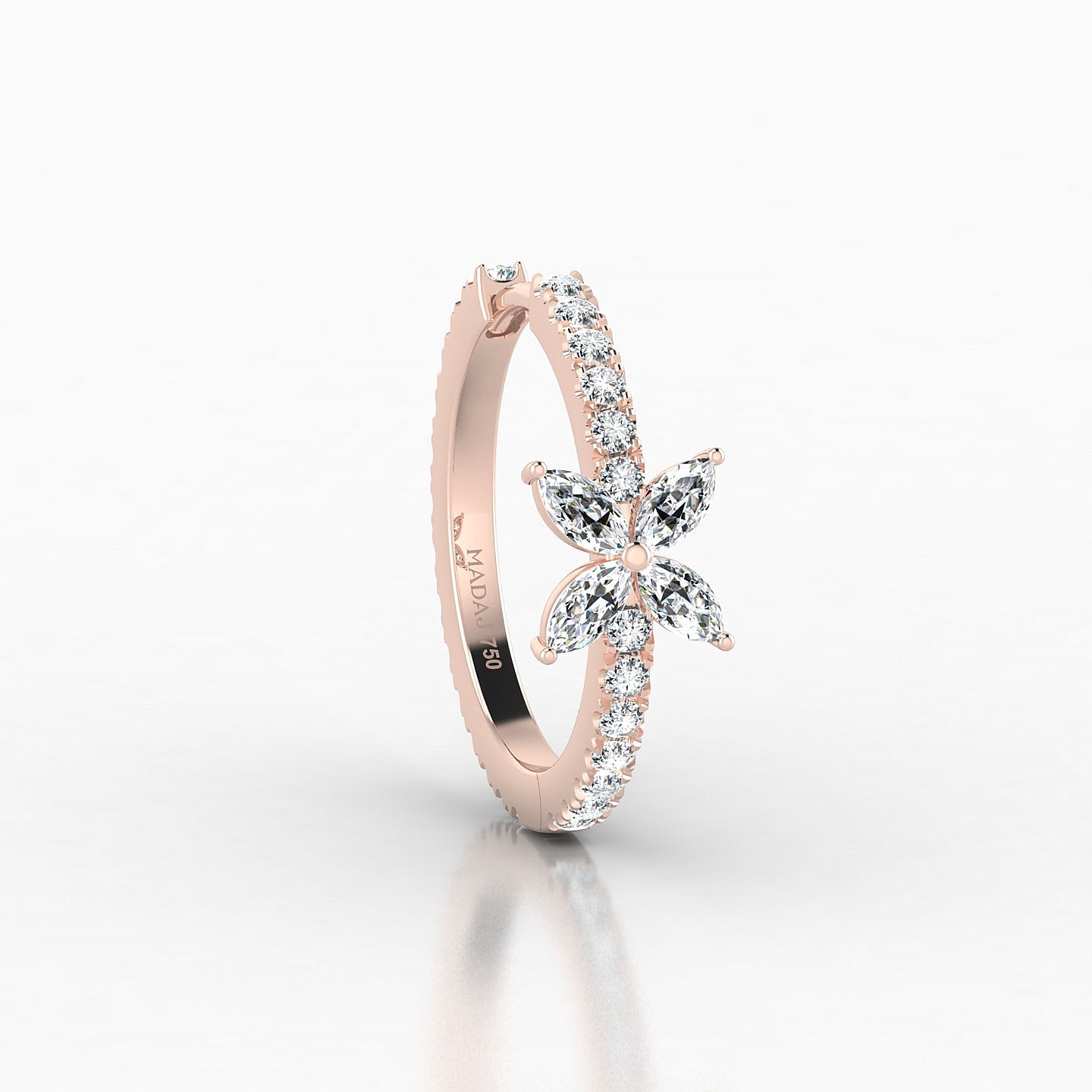 Each piercing is distinctively engraved with the MADAJ logo and stamped with '750' to guarantee its 18-karat gold composition.