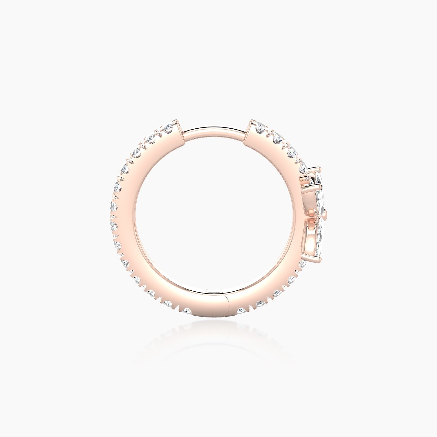 Kane is a hoop made of 18k gold, offered in yellow, white, or rose gold. Its clicker mechanism guarantees a safe and invisible fit. The piece features marquise and round shapes natural diamonds, of G - VS quality. This piercing can be worn on the lobe, helix, anti-helix, conch, contraconch, rook, tragus, or antitragus.