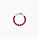 This 18k gold daith piercing, called Ops, comes in your choice of yellow, white, or rose gold. Its integrated clicker system ensures a stable and reliable closure for continuous wear. This piercing is set with natural rubies of round shape, of AAA quality. A model designed for daith wear only.