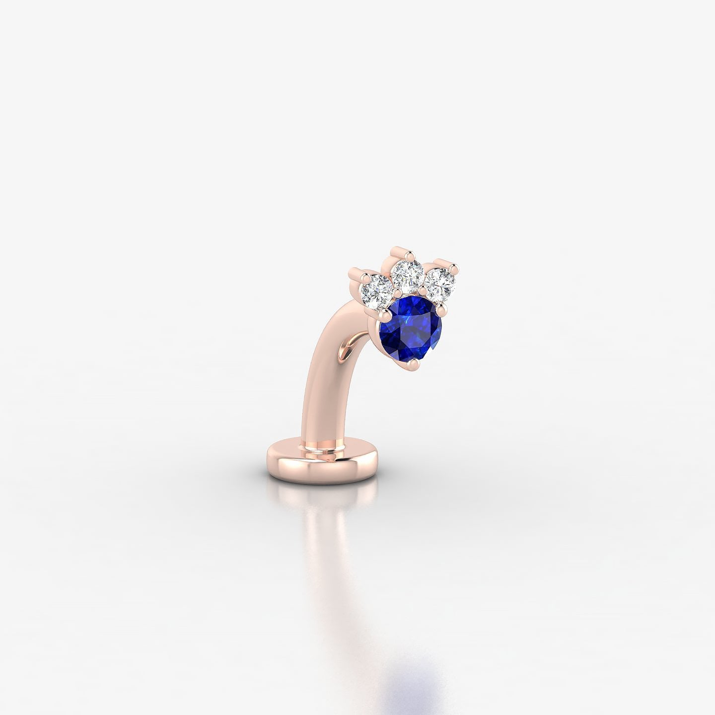 Sedna is a floating belly button piercing in 18k gold, available in yellow, white, or rose gold. It comes with a screw closure system. This piece is set with round shape natural sapphires and diamonds of AAA and G - VS quality. Designed for the navel, this model highlights the top stone by placing it above the bar.