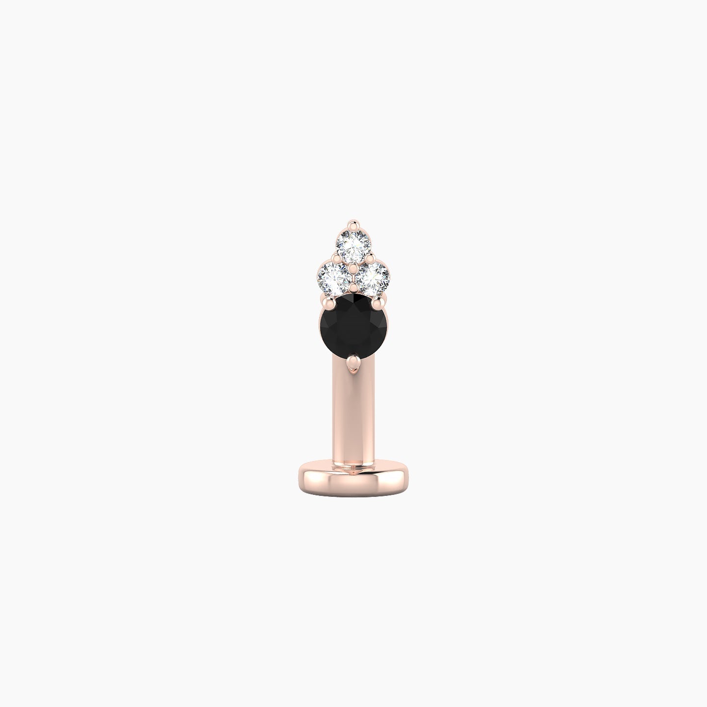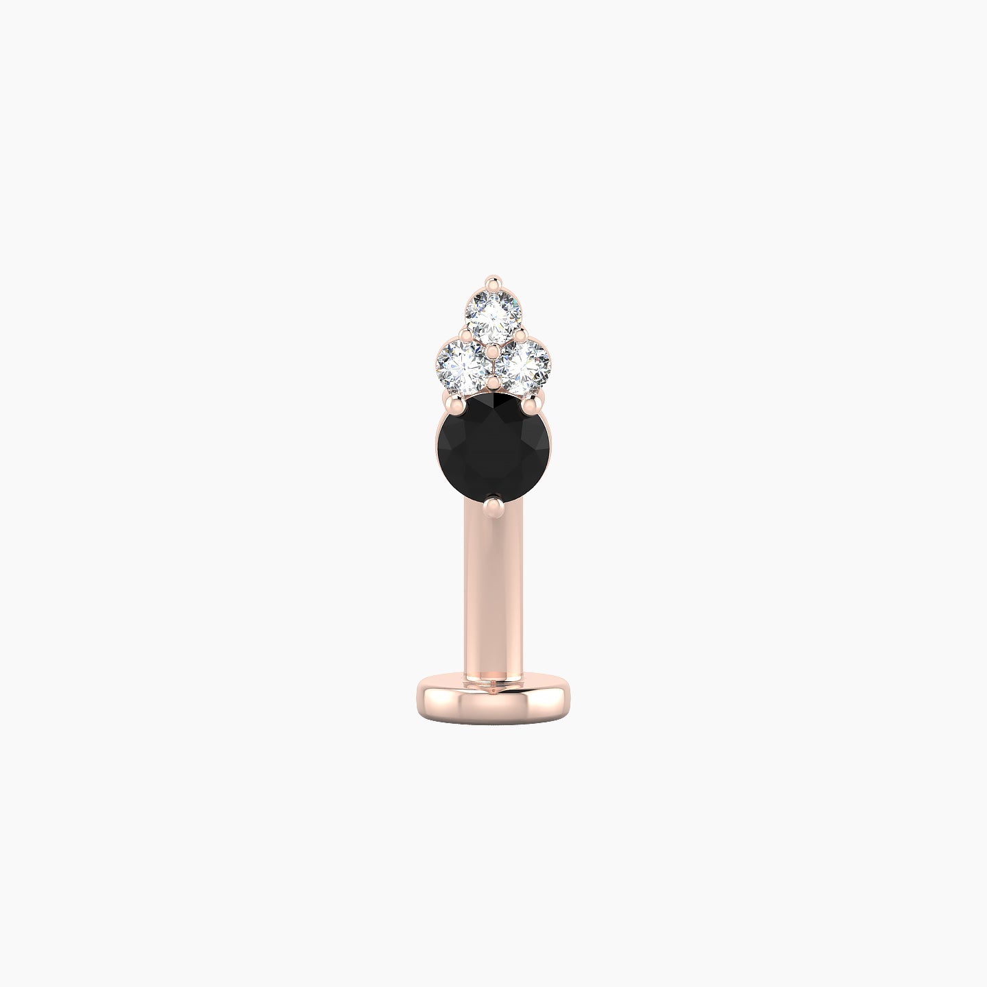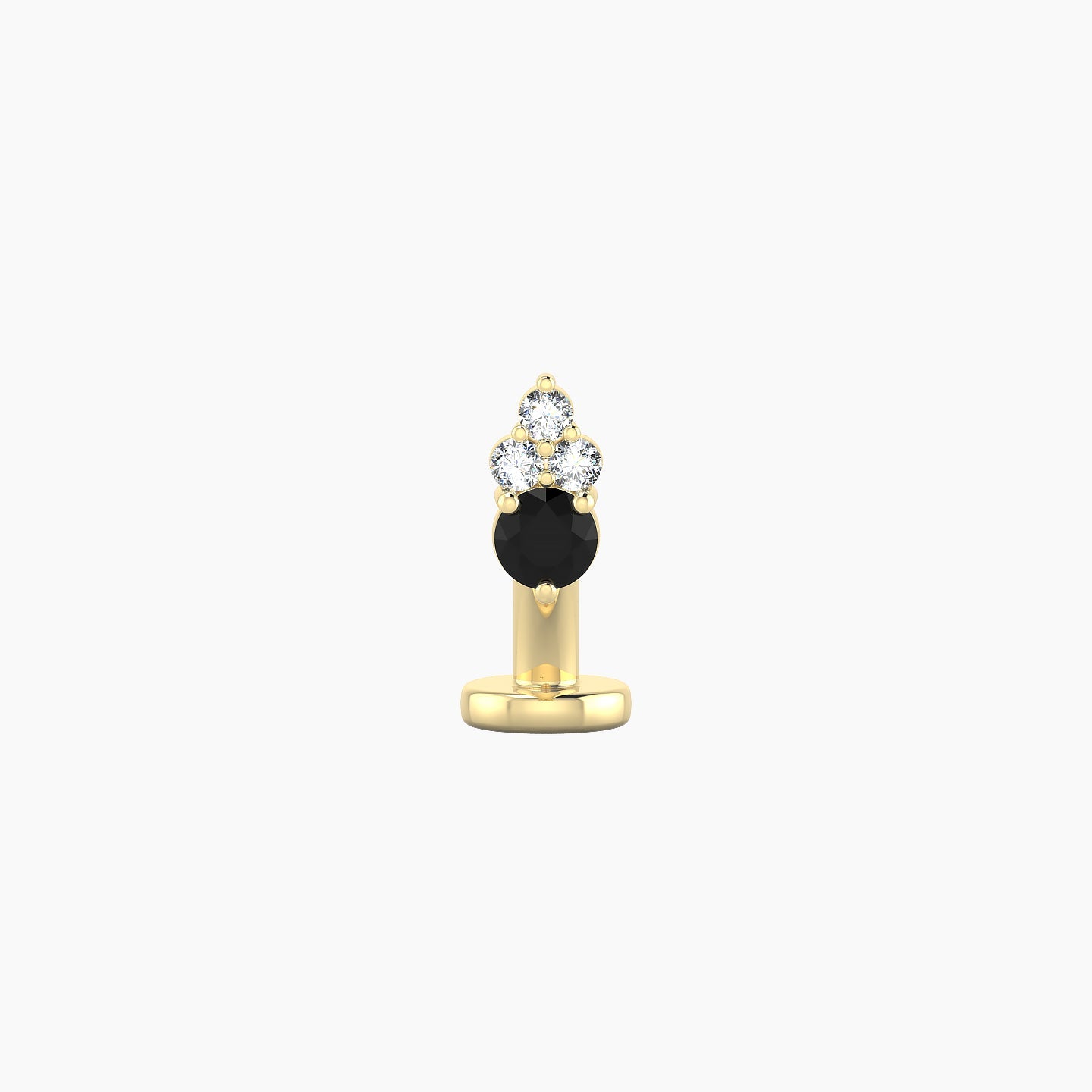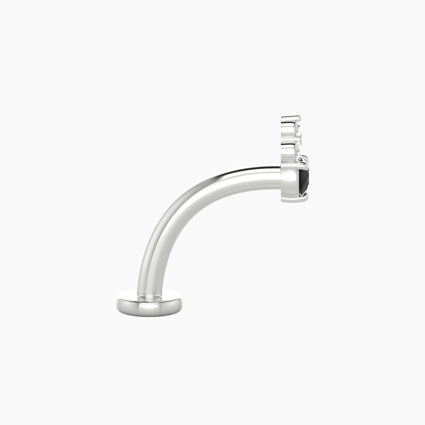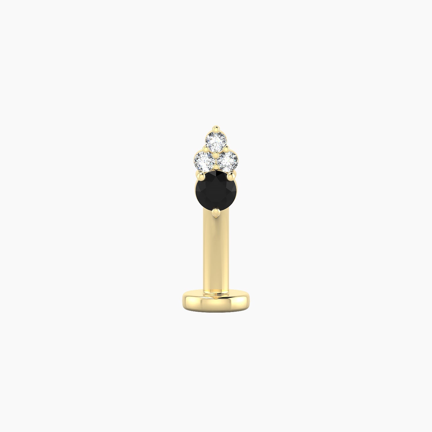 This floating belly piercing, Sif, is made of 18k gold and comes in yellow, white, or rose. It comes with a screw closure system. The piercing is adorned with round shape natural black diamonds and diamonds of AAA and G - VS quality. This piece is made for belly wear and showcases the upper stone above the post.