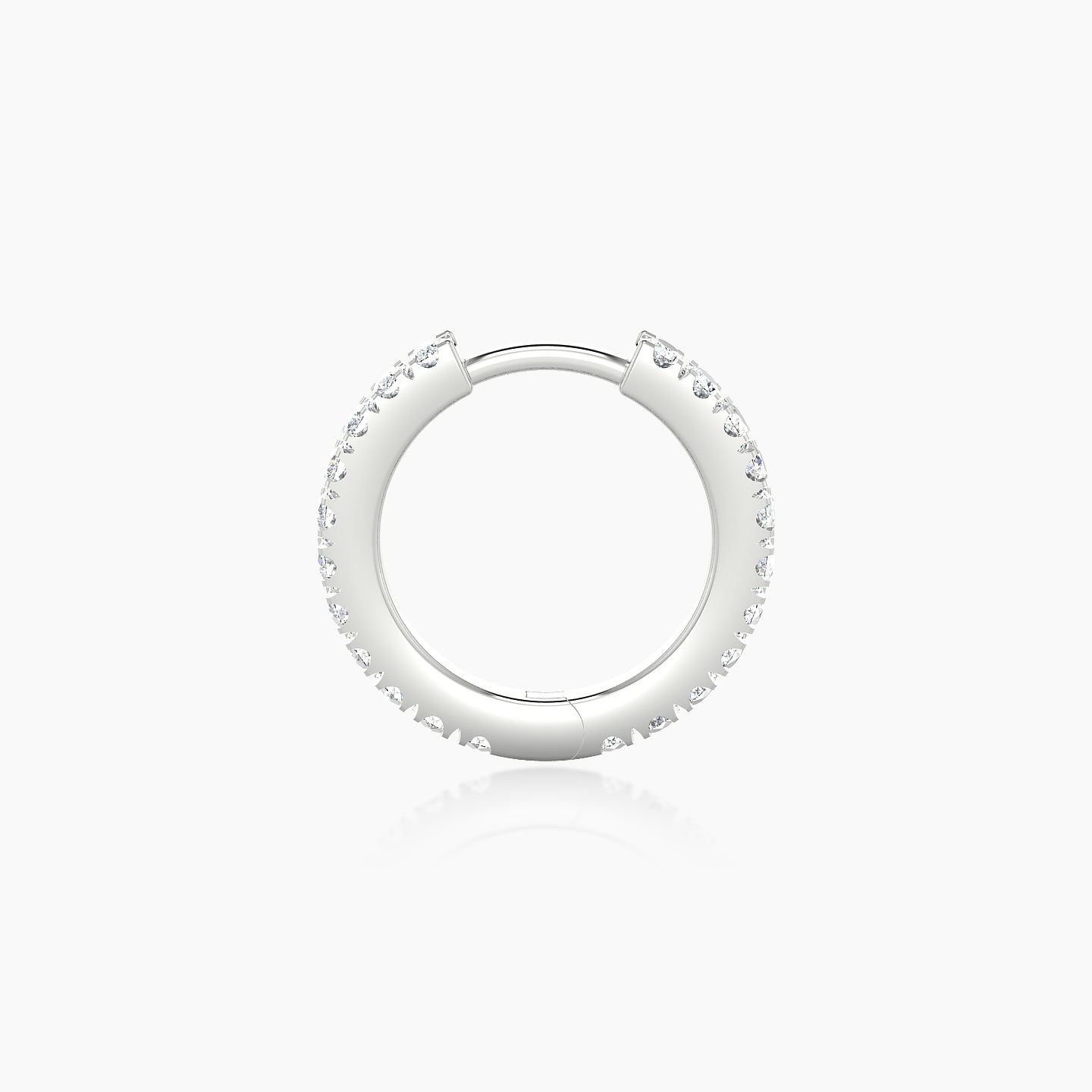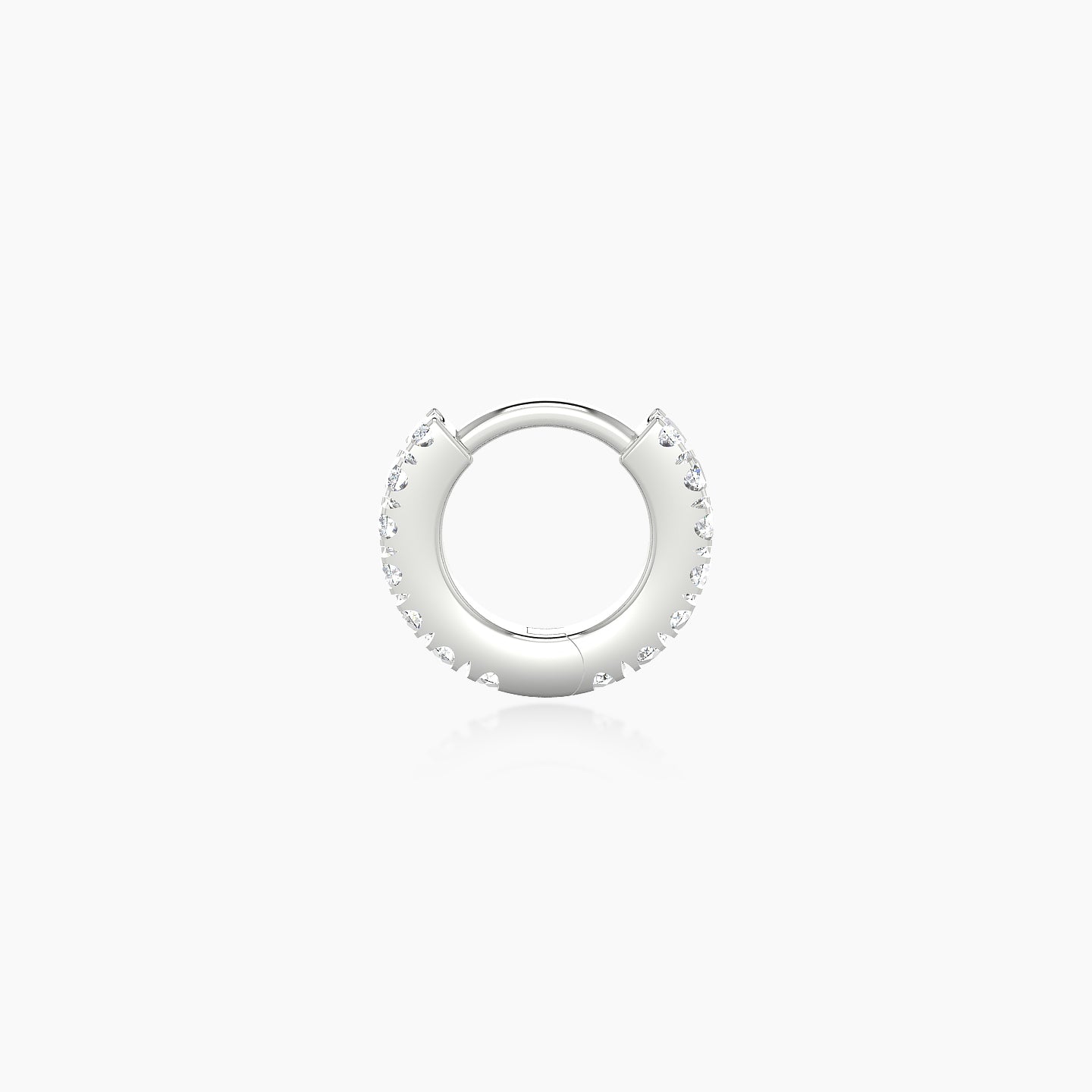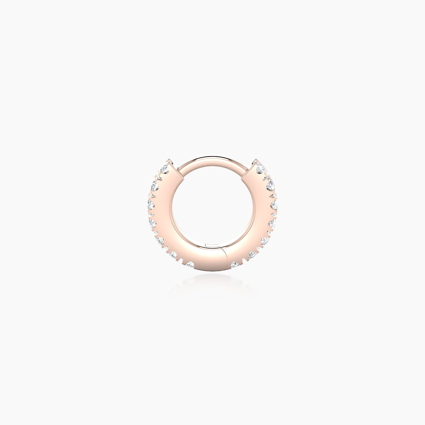 Terra is an 18k gold hoop piercing, available in yellow, white, or rose gold. It features a clicker closure, ensuring a secure and discreet fastening. It is adorned with natural diamonds, of round shape, of G - VS quality. This piercing can be worn on the lobe, helix, anti-helix, conch, contraconch, rook, tragus, or antitragus.