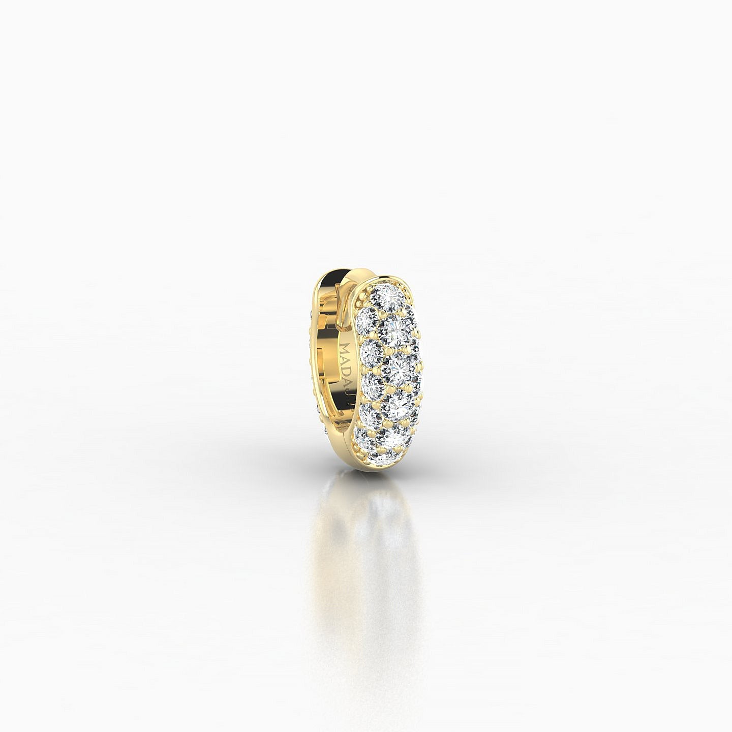 Each piercing is distinctively engraved with the MADAJ logo and stamped with '750' to guarantee its 18-karat gold composition.