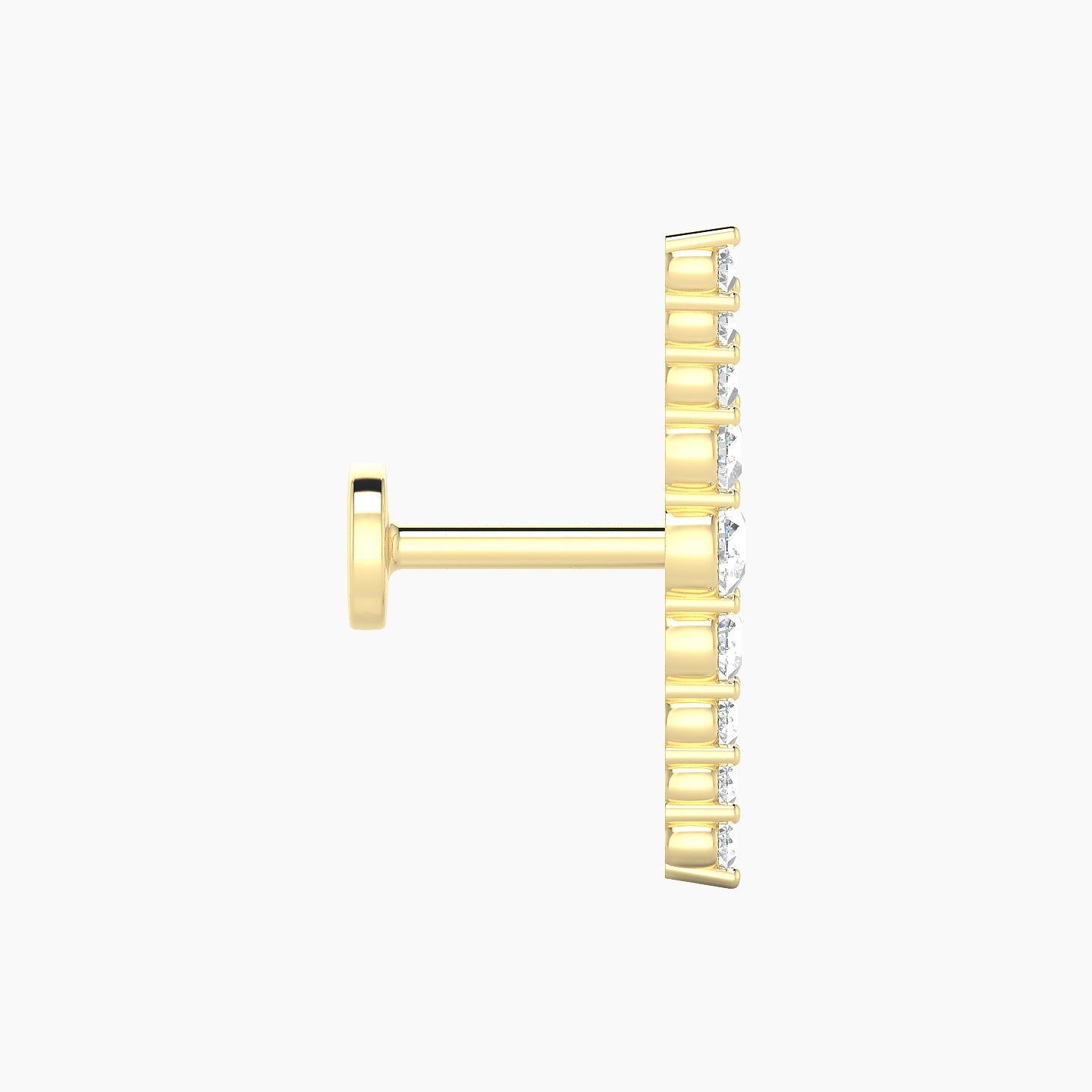 Made from 18k gold, Tiamat is offered in yellow, white, or rose gold finishes. Its internal screw system and flat back plate make it ideal for comfortable, long-term wear. This piercing is set with round shape natural diamonds, of G - VS quality . This piece can be worn on the lobe, helix, anti-helix, conch, contraconch, or tragus.